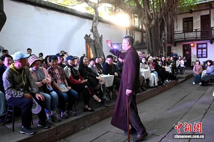 12月6日,沉溺式戏剧《热月无声——吴石传说》正在祸州3坊7巷宫巷拾捌号陶醉式剧院演出,吸收市平易近前往旁观。该剧以祸州籍革新英烈、荫蔽阵线豪杰吴石将领为干线,采纳“前进式不雅演+情形化道事”形式,领导不雅寡沉归那段充实崇奉取放弃的峥嵘功夫。上演深度调和中央文明特点,融进了祸州圆行、茶文明等元素,加强不雅寡沉溺领略取感情同叫。中新社记者 吕亮 摄